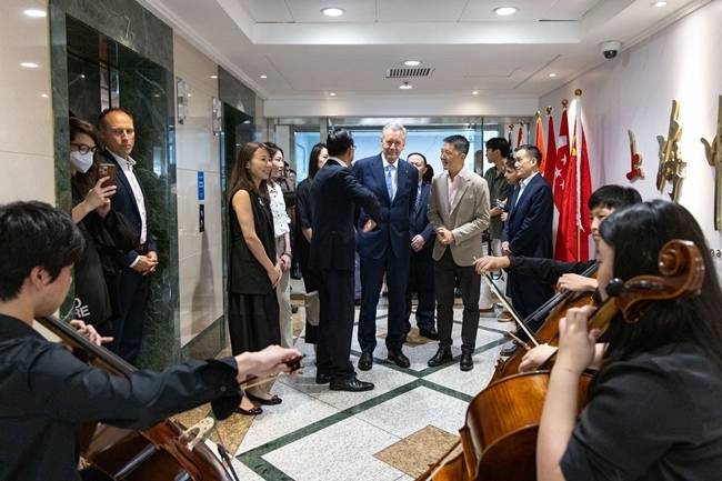 活动进入轻松而温馨的交流环节。双方就未来合作方向进行了简短沟通,并互换礼物、合影留念,气氛融洽热烈。一段精彩的弦乐表演再次响起,为本次活动画上圆满句号。(通讯员:谢曦玥)