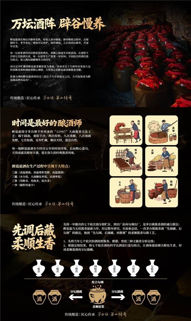 在新的国家酱香型白酒标准推行背景下,陕西怀恒商贸有限公司以“爱拼才会赢”精神为内核,携手贵州无忧酒业集团有限公司茅台镇·第二传奇—-重磅推出醉追最高端酱酒。产品由贵州茅台酒股份有限公司原七位大师倾心雕琢,传承非遗技艺,严格恪守“12987”古法工艺,历经时光沉淀。同时,无忧酒业集团总工程师任义平独创柔顺酱香工艺,该工艺秉承“传承传统不离古,系统创新不离宗”的理念,在坚守酱香型白酒核心工艺的基础上大胆创新,将传统“先储存、再勾调”流程,优化为“先盘勾、先勾兑,再经组合、缔合酯化、缺陷修复、勾调、微调,最后储存”的酒体设计流程。通过这一创新,实现工艺从模糊到清晰、从零散到系统、从数字量化到品质优化的升级,构建起全面的质量系统评定体系,最终酿就酒体柔顺醇厚、酱香浓郁、回甘悠长的卓越品质。无论是村BA夺冠的庆功宴、商务宴请的正式场合,还是亲友相聚的温馨时刻,“醉追最”既能彰显高端格调,又能传递独特文化雅韵,成为兼具品质与内涵的酒类新选择。