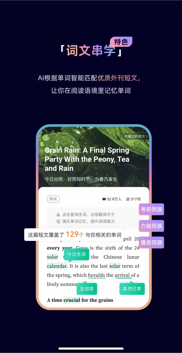 •从考研、四六级、雅思等考试同源外刊中匹配短文,确保语境贴近实战需求;