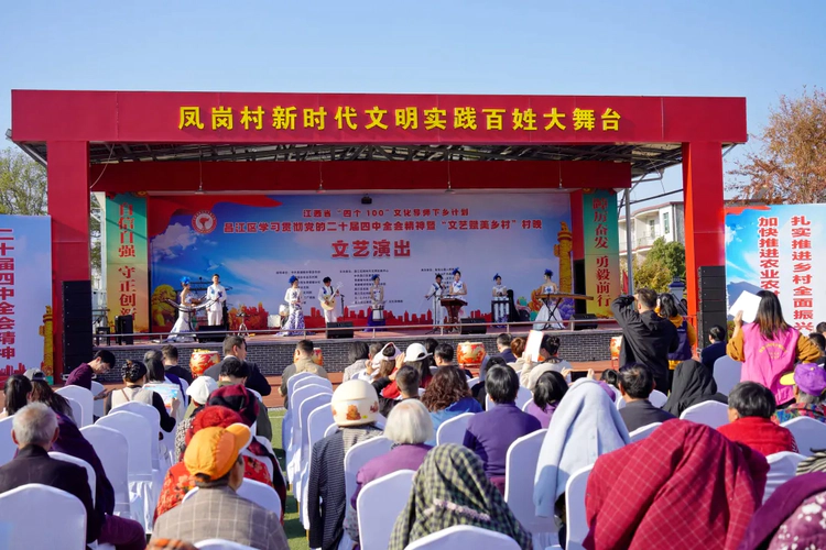 12月1日下午,江西昌江区鲇鱼山镇凤岗村百姓大舞台热闹非凡,江西省“四个100”文化导师下乡计划——昌江区学习贯彻党的二十届四中全会精神暨“文艺赋美乡村”村晚文艺演出在此启幕,近千名村民现场共享这场“家门口”的文化盛宴。景德镇学院党委副书记王丽心,景德镇市委宣传部副部长张翔,市文联党组书记胡丽萍,市社科联党组书记、主席马莉萍,昌江区委副书记魏若然,区委常委、宣传部部长陈新剑,景德镇学院宣传部部长赵雪政,江西省“四个100”文化导师邱西颖、于芳、邬书永出席。