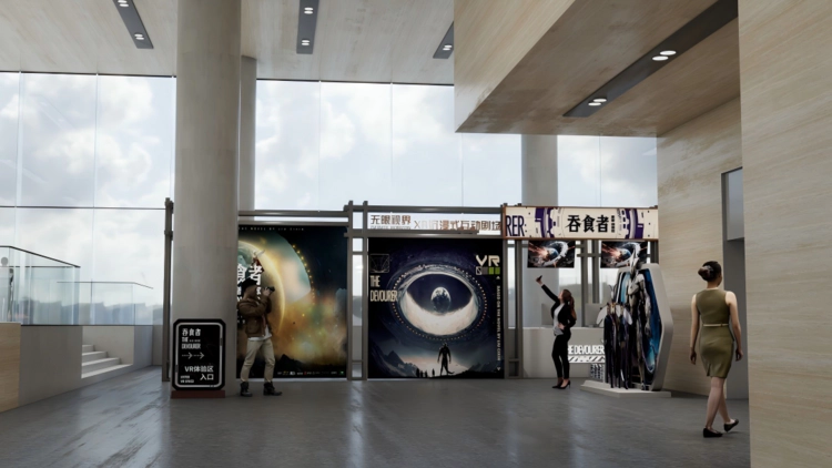 无限视界数博馆VR沉浸空间项目,是联合天津美术馆及刘慈欣原著《吞食者》改编的VR大空间共同推出,是数博馆内重要的常设互动体验项目。
