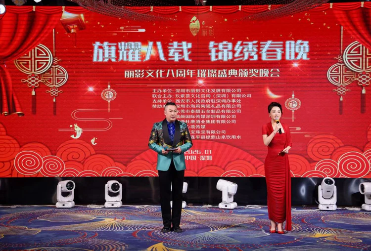 盛典在万众期待中正式拉开帷幕。来自上海的知名主持人宫晓昕与深圳资深主持人亮哥联袂登台,携手执话筒,以温润如玉、诗意盎然的语言,引领全场嘉宾共同回望丽影文化八载春秋的奋进征程。
