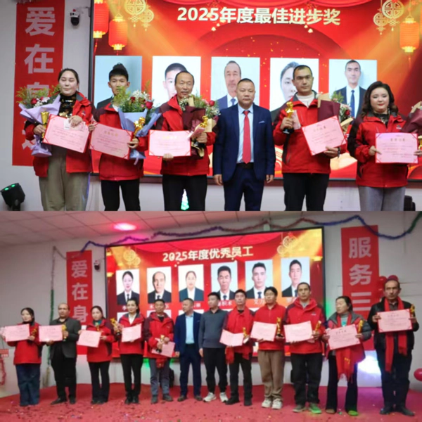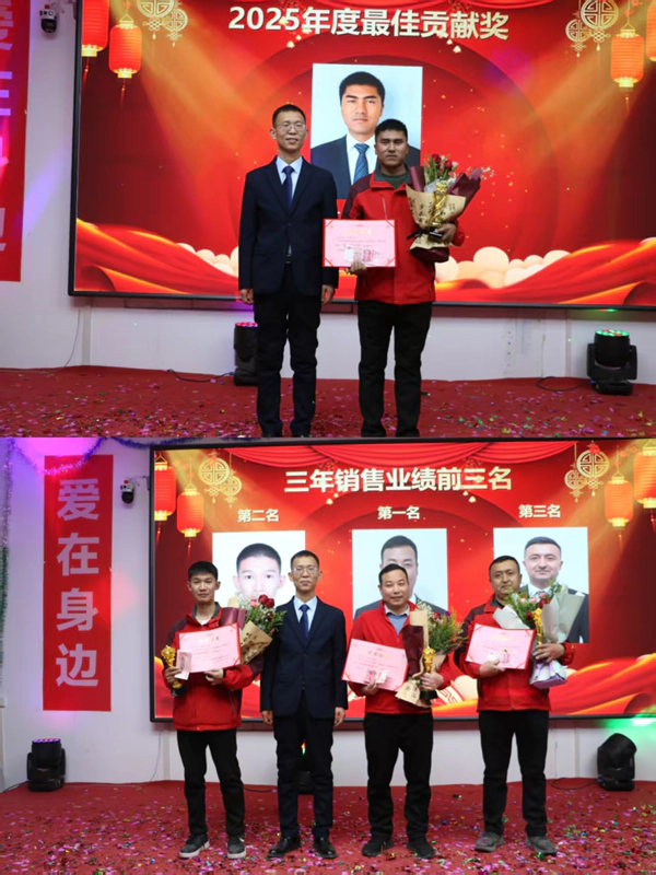 表彰环节与抽奖、文艺节目穿插进行,将现场氛围推向高潮。集团对13名优秀员工、8名先进个人、2名优秀管理奖、2名最佳管理奖、4名优秀新人奖、6名最佳进步奖、1名最佳贡献奖获得者进行隆重表彰;特别为最佳贡献奖员工的父母设立养老金奖,为后勤部、销售部业绩突出的员工颁发总计百余万元年终大奖。其中,销售冠军赵华勇斩获20余万元年终奖,他激动表示,将带着这份认可继续深耕市场,为集团发展再立新功。