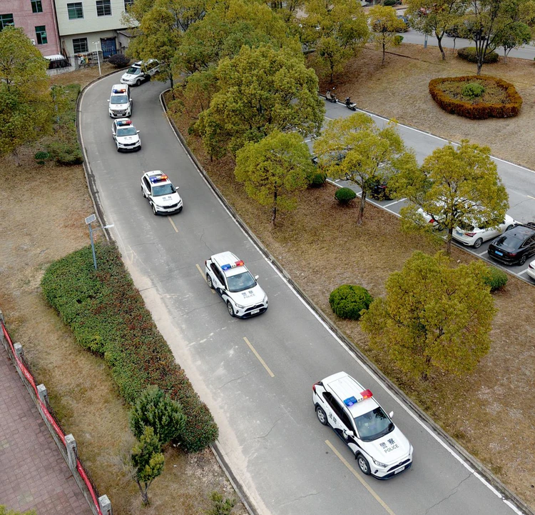 ▲在景德镇市乐平市涌山镇政府大院,参加完“执访同治·终本清仓之涌山攻坚专项行动动员大会”的执行法官和法警正驱车前往该镇各村和社区等地开展执行工作。