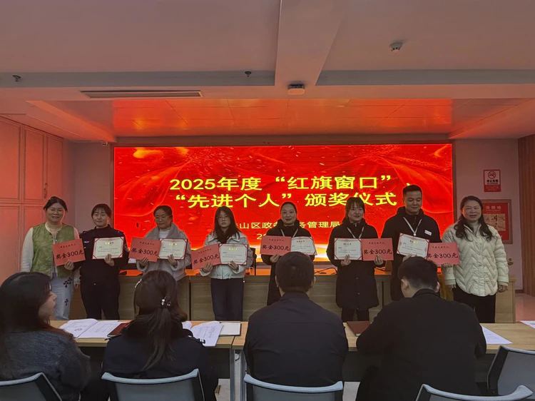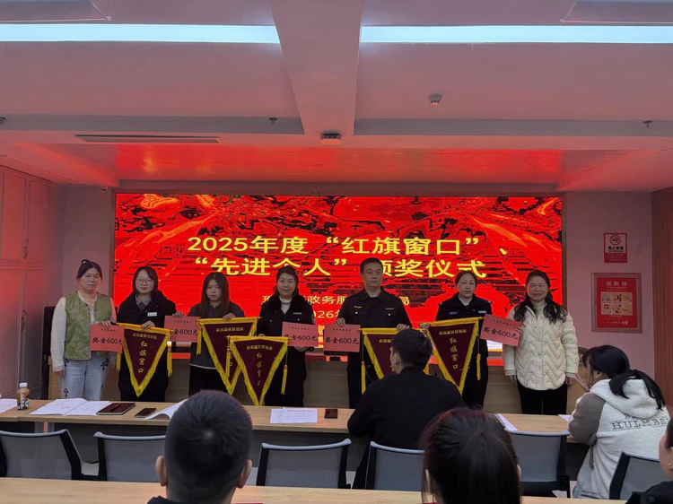 会议集中表彰了2025年度在政务服务一线表现突出的先进集体、红旗窗口及先进个人。颁发锦旗和表彰证书,对获奖单位、获奖集体和个人的工作成效予以充分肯定。获奖者中有的以精湛的业务能力、高效的办事流程赢得群众点赞,有的以热情服务、贴心关怀让办事群众如沐春风。他们以实际行动诠释了“以人民为中心”的服务理念,充分展现了我区政务服务工作者热情专业、务实担当的良好风貌,成为政务大厅里最亮丽的风景线。