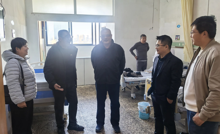 ▲中铁四局市政公司项目党支部书记、工会主席探望住院职工